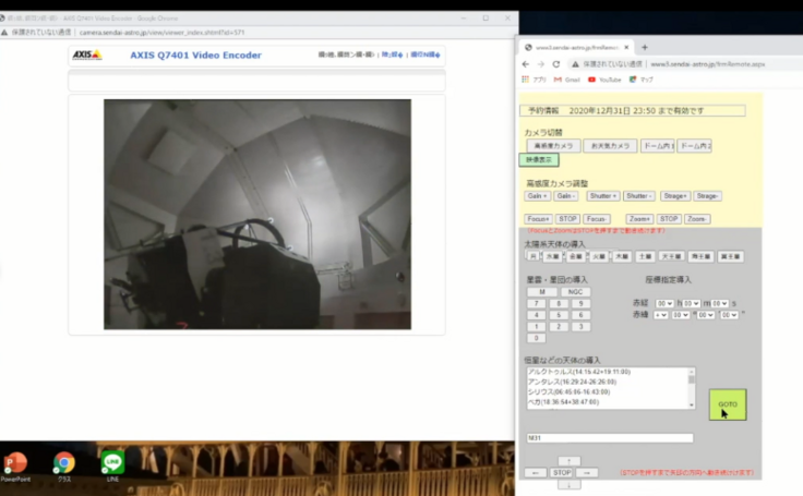 コロナのため2020年度と2021年度は、zoom を使ったリモート開催で実施しました。観測実習は、仙台市天文台の ”ひとみ望遠鏡” を受講生が遠隔操作することでリアルタイムで実施しました。
