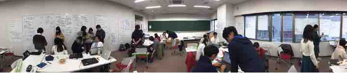 3. 受講生を3,4名一組の3〜5つの班に分かれて、班活動で研究を遂行する。