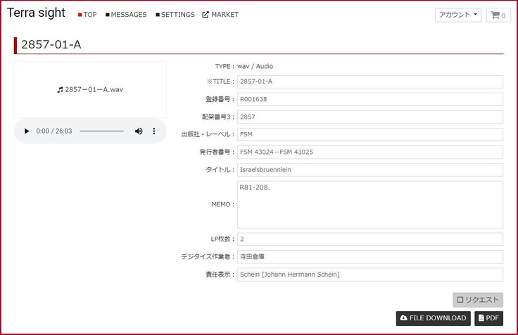 音源・書誌データを保管するデジタルアーカイブシステム「Terra sight」画面 [提供: 寺田倉庫株式会社]
