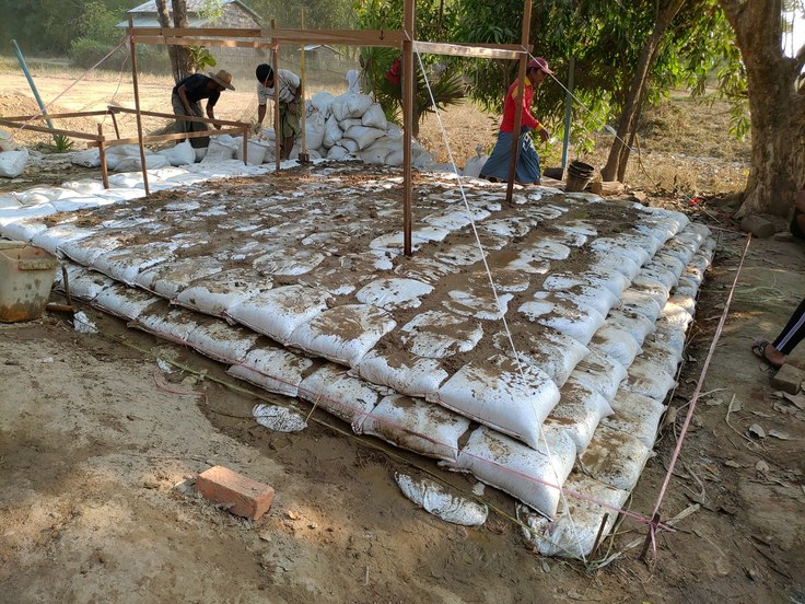 チャウエィンタン村の学校でも約20人が出てソイルセメント土嚢積みが1/5まで進捗しました。(1月20日現在)2月に再渡航しタンク設置、配管まで終了予定です。