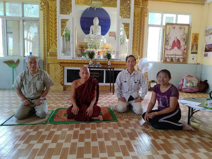 仏教国のミャンマーでは村ごとに僧院があり、そこの僧侶は村人たちのリーダーでもあり、尊敬を集めています。僧侶からジャパンブリッジと呼ばれる80~90年前に日本人によって作られた木製の橋が近くにあり、今でも使われていますとのお話を頂きました。通水式ではご案内していただくことになりました。