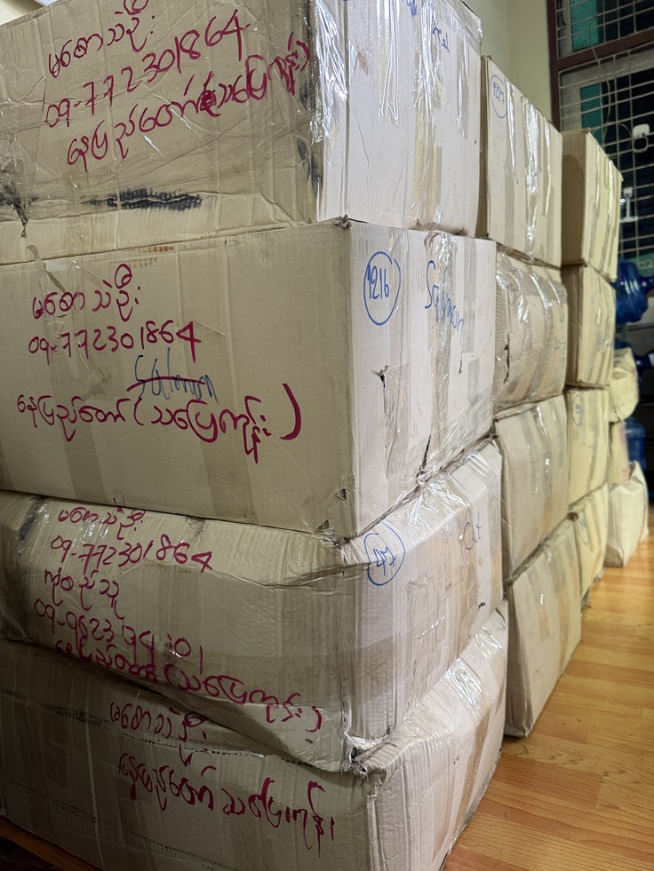 荷物は約3か所経由して届くそうで、最初の送料だけ現金で支払い、次とその次は荷物が届いたらオンライン決済で払うシステムだそうです。(ミャンマーも結構進んでるんですよ^^)