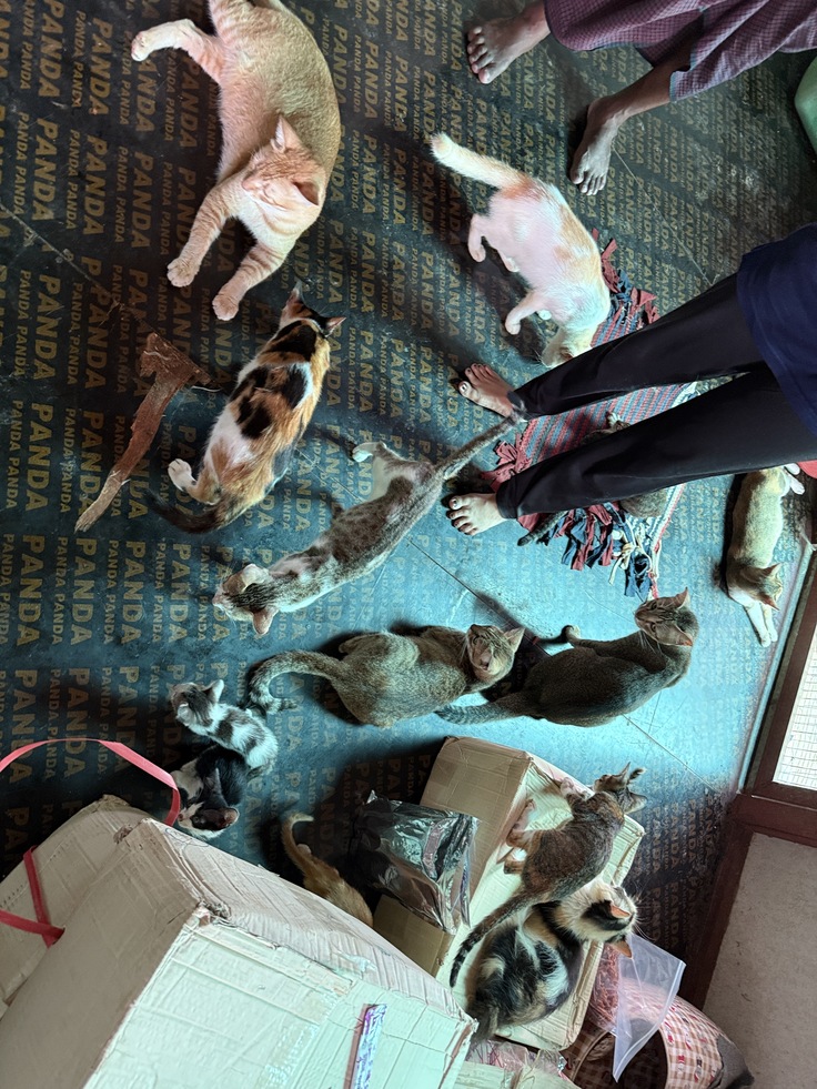 (信じられないと思いますが、ミャンマーは猫もご飯(米)を食べると信じてご飯しかあげない人もいます・わたしの予想では、お外でネズミや鳥を食べていると思いますが・・・)