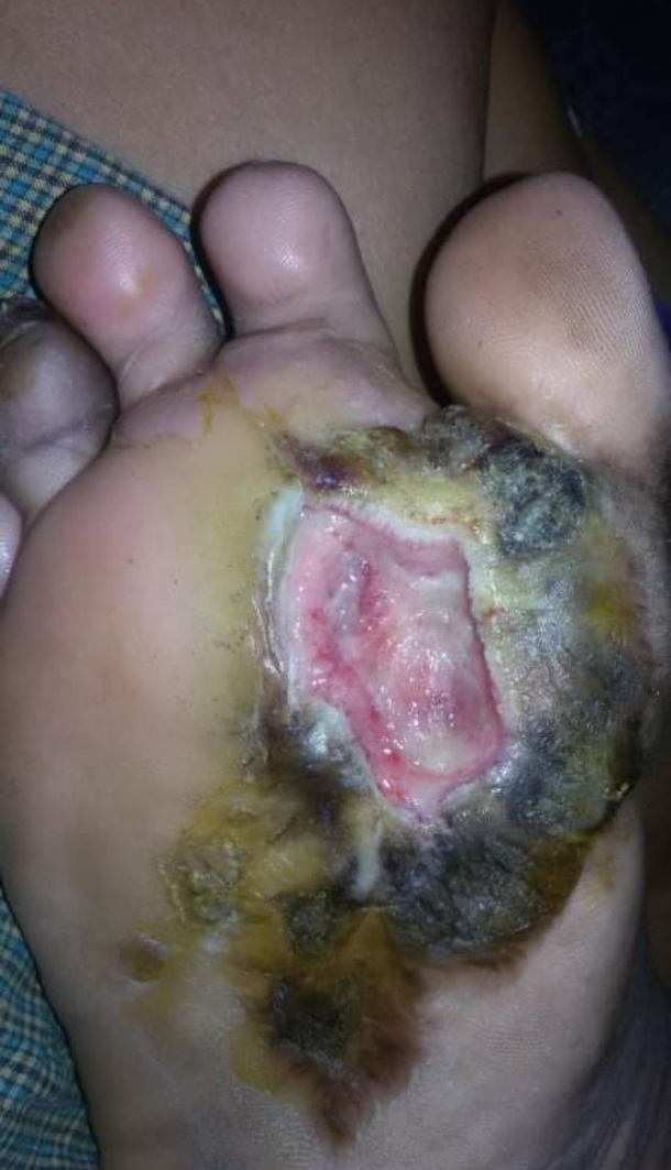 ミャンマーの人たちを支援する有志の会に、医療費の支援を求めるメッセージとこちらの写真が届きました。足が深刻な状況になっていますが、お金がなく、病院に行くことができていないとのことです😰