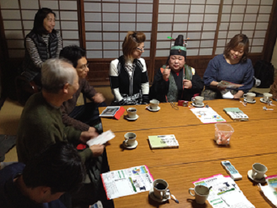 参加メンバーは13人、午後7時前から仕事を終えて三々五々に集合しました。世界を個展で駆け巡る鹿児島(琉球)出身の踊る大作画家・作城妙子さんも参加してくださいました。