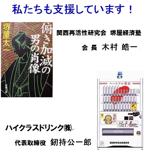 ◇大平寺校区自治連合会/郷土愛はすばらしい事であり、賛同いたします。 ◇北楠風荘自治会女性部さま ◇鴻池自治会女性部さま ◇美杜里の会/緒方さま・久保さま・福与淳子さま ◇屋敷林を守る会さま ◇中甚兵衛顕彰会さま ◇東大阪市留守家庭児童育成クラブ協議会さま ◇三河電機株式会社さま ◇㈱西日本電気保安事務所さま