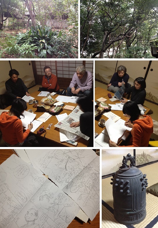第1回編集会議のあと漫画担当の菊山さんが石上先生のアドバイスの元で初稿から加筆修正されたシナリオを、出席委員で精査検討しました。史実の検証、興味をそそる筋立て、限られたボリュームで甚兵衛さんの偉業をどう伝えるか・・・百出した意見を踏まえて、菊山さんにはご苦労ですが更にシナリオを練り上げてもらい次回に臨むことになりました。他の委員各位は当時の風俗や習慣など参考になる文献等探して協力していきます。