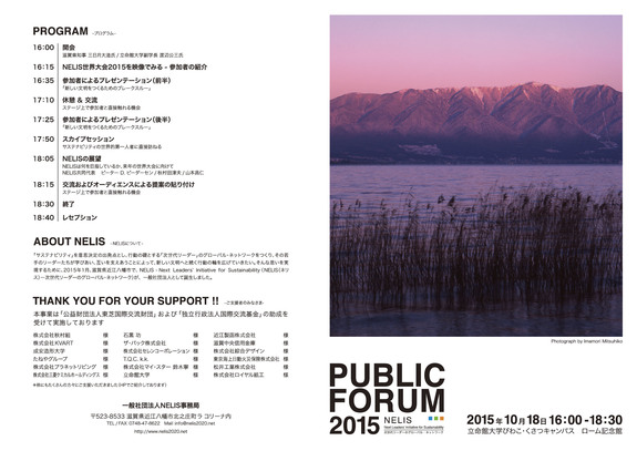 NELIS世界大会2015のパブリックフォーラムを下記の通り開催いたします。