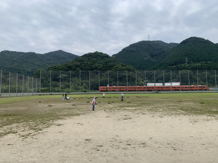 このプロジェクトに先立ちまして、先日、数年にわたって未使用だったグラウンドの除草作業の支援を行ってまいりました。(下記写真)