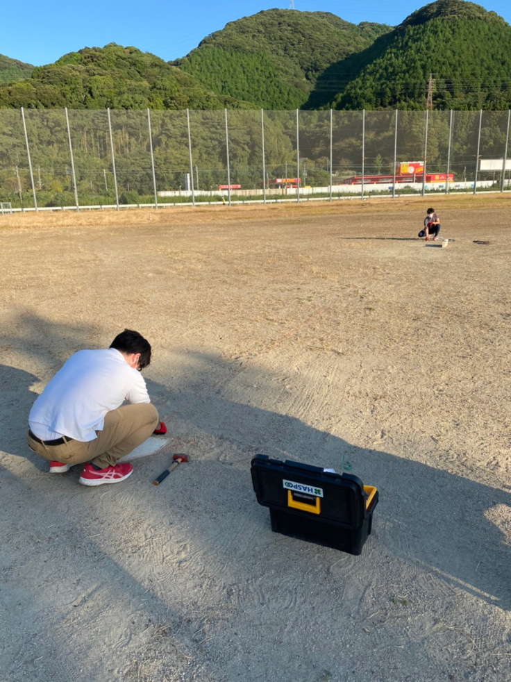 プロの手際良い作業によって、ピッチャープレートが正確かつ綺麗に埋め込まれ、また塁間のポイントも調整してくださいました。