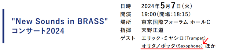 実はこちらの中で、5月7日開催「“New Sounds in BRASS” コンサート2024」出演のゲストを追加発表しております!