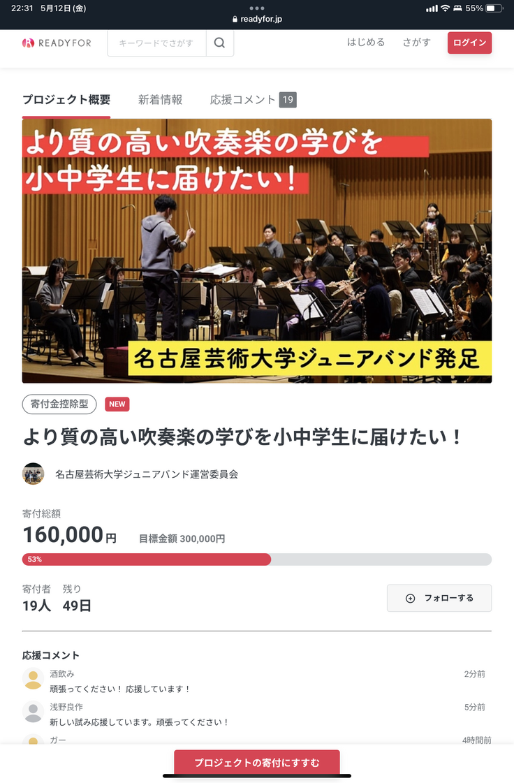こちらの新着情報ではこのクラファンの動向とジュニアバンドの活動報告をさせていただきたいと思います。