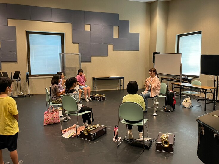 その後は楽器の経験者は合奏室で交流しながら基礎合奏をアレンジしたトレーニングで楽しみました。