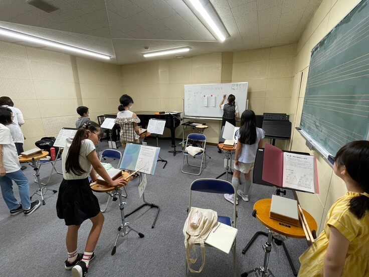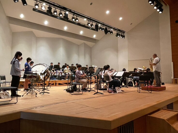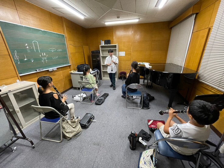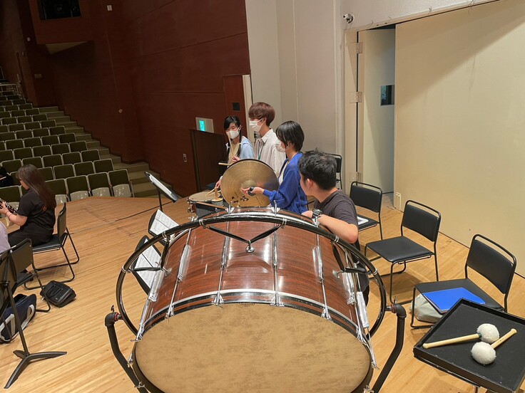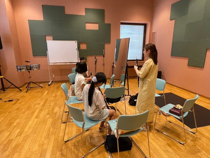 経験者の中でもレベルの差があり、大学生が隣で一緒に演奏したり、中学生通しでお互いで教えあったりして譜読みを行いました。