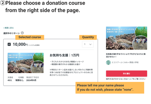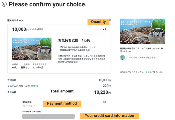 ※特別なリターン品をお届けしない代わりに手数料等を除くほぼ全ての支援金ををプロジェクトのために活用させていただきます。