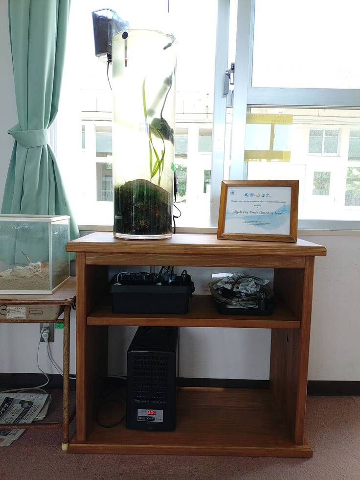 野底小学校5・6年生の教室に設置してあるウミショウブ水槽。