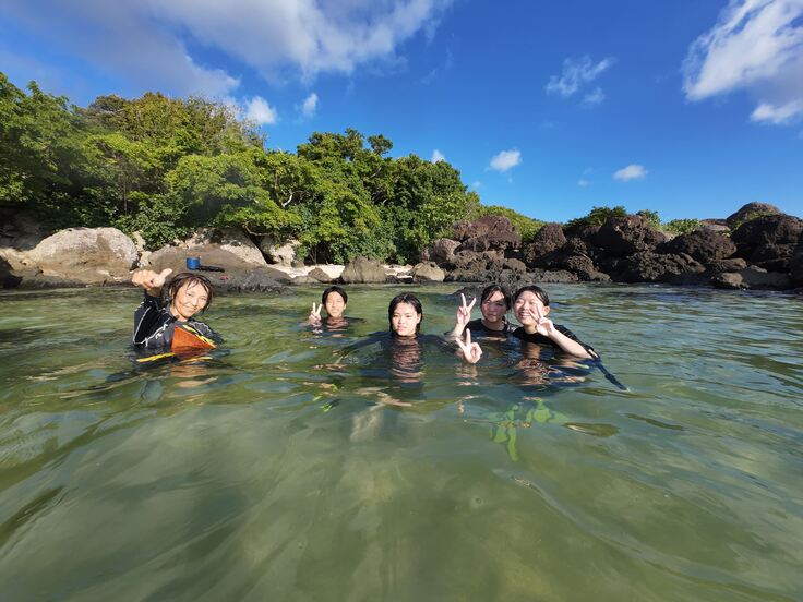 近所の中学生たちがウミショウブレフュジア内を泳いで観察しました。