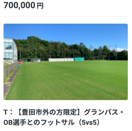 今回は、みんなからいただく寄附金を名古屋グランパスやスタジアムに還元していくために、豪華な”モノ”ではなくて、特別な体験やイベントを届けられるように工夫したみたいよ!
