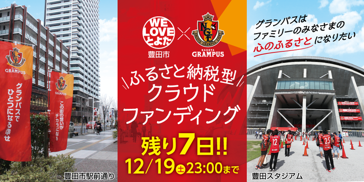 豊田市×名古屋グランパスクラウドファンディングの挑戦、終了まで残り7日となりました。