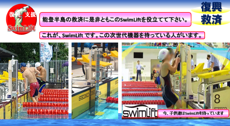 能登半島の救済に、この次世代水泳界の新環境を担うSwimLiftを是非ご活用下さい。