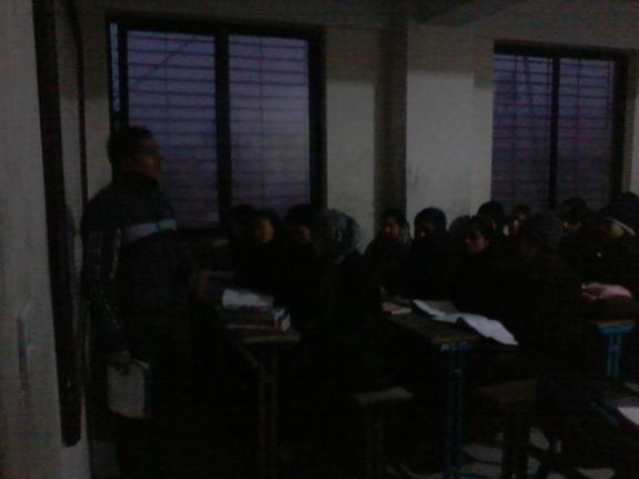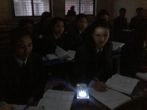 (先生も真っ暗な中授業は大変)