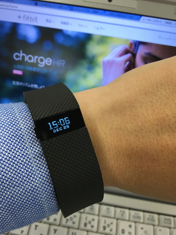 今回、リターンの一部に設定しているのは写真にもあるFITBIT CHARGE HRという機種です。毎日の歩数や消費カロリー、運動した時間、睡眠時間、そして心拍数を自動で24時間計測し、記録していきます。