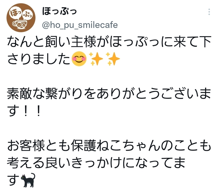 前述のCafeほっぷっ様での配布時、トレカに載っている猫の飼い主さんがお店を訪れてくれました。