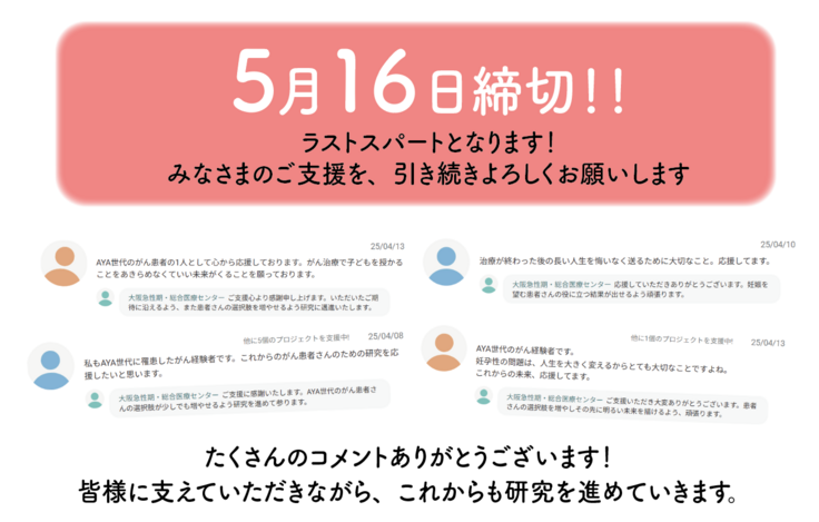 温かいご支援、プロジェクトへのご関心をいただき、誠にありがとうございます。