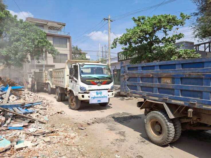 倒壊した建物の瓦礫などの処理は、他の町については情報が入っていませんが、ピョーボエ郡では、ボランティアの人たちが政府の担当者と相談し、処理場所を決めて運んでいます。