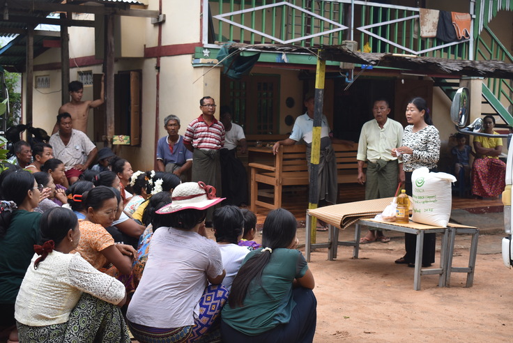 このような厳しい状況が続く中、オイスカのスタッフは、日本からの支援をもとに懸命な支援活動を続けています。前回の報告以降も、別の村でお米や油、オイスカ製のパンやケーキ、マット、照明などの生活物資を被災者に直接届けました。支援を受けた被災者からは、日本の支援に対する感謝の声が寄せられています。