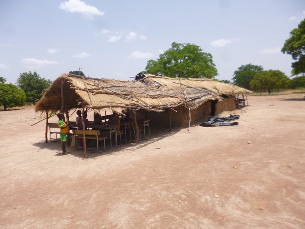 教室建設を決めたトゥリポラ小学校は、幹線道路から離れ電気も無いポニ県の中のブセラ郡という郡の小学校です。この学校には現在2教室ありますが、両方の教室ともわらぶき教室です。また、今年度は2年生30人、4年生31人という2学年のみで授業が行われていますが、来年度が始まる2017年10月からは新入生30名前後の入学が予定されているため、教室数が足りていないことが深刻な問題になっていました。