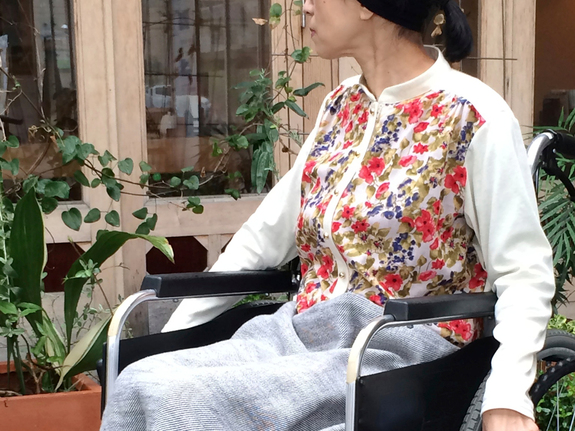 (車いすが叔母です。写真の中で着用の地味な配色のブラウスより、
