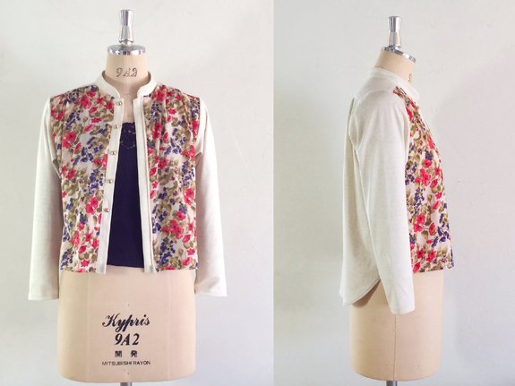 ・前身頃は柔らかいローン生地。後身頃と袖は伸縮性のあるジャージを使用しています。