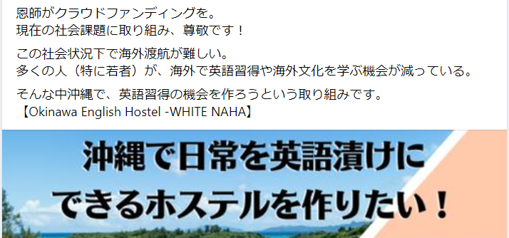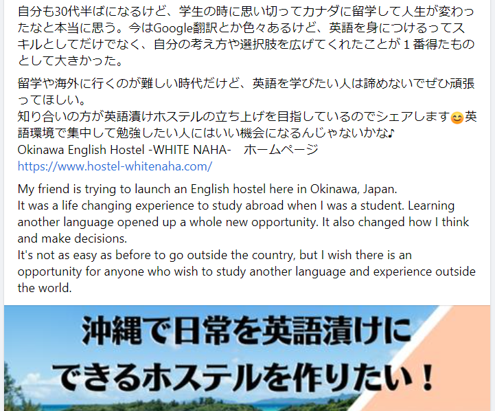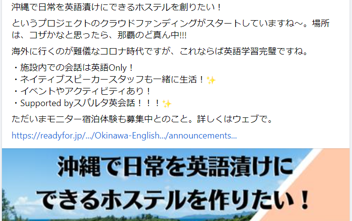 https://readyfor.jp/projects/Okinawa-English-Hostel?sns_share_token=&utm_source=pj_share_url&utm_medium=social
