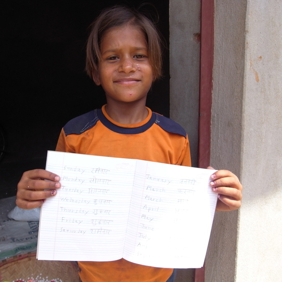インド人教員のアカンタ先生と一緒に、朝から子どもたちの家を回りました。