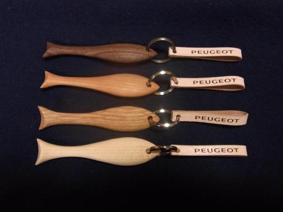 また、革の部分にもロゴを入れることも可能になってきます。こちらはフランスの自動車メーカー、プジョーさまでご購入いただいた時の写真です。