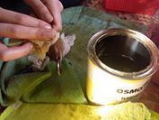 最後にOSMOというドイツのメーカーの天然由来のオイルを塗って完成!左がタモ、右がヒノキです♪