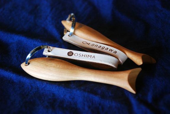 ■ケヤキを限定使用し、ひとつひとつ丁寧に作られた、「onagawa fishキーホルダー」と「onagawa fishストラップ」のセット