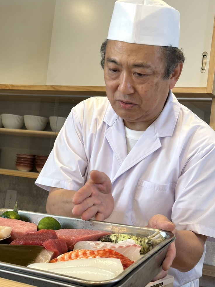目黒秀信先生は、東京都墨田区出身。ヨロシク寿司(東京府中市)で13年間修行後、独立し、現在は東京稲城市でヨロシク寿司を営む。厚生労働省の調理技術技能士資格を持ち、東京都鮨商組合の技術衛生部長・青年部長も務めています。2025年大阪で開催する万博では監修の寿司メニューとして提供する予定。