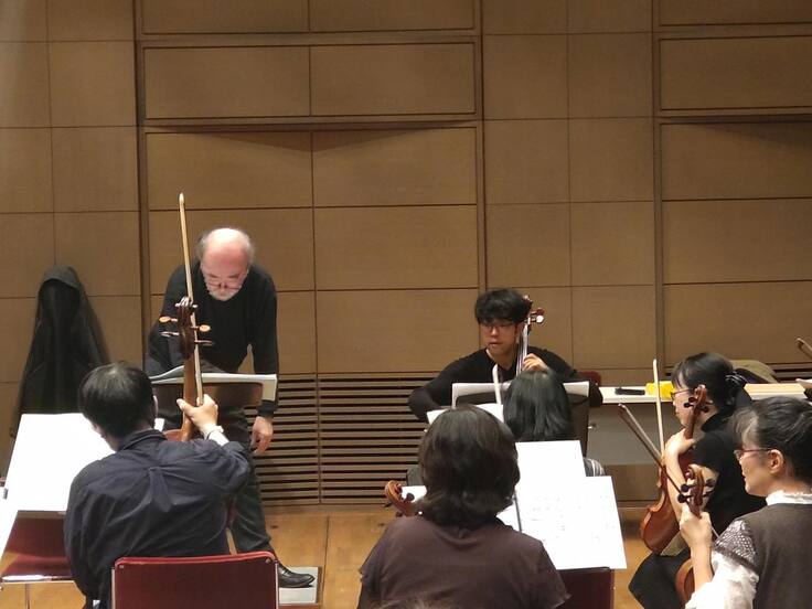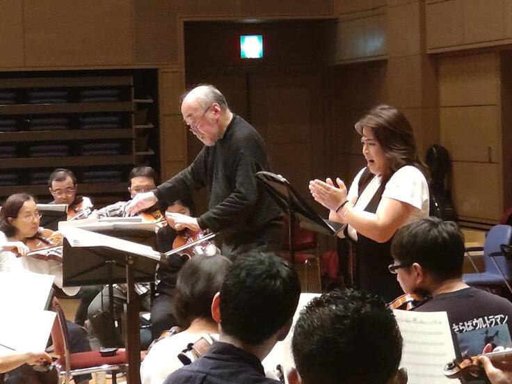 過日、当演奏会のソリストを務められるチェロの横坂源さん、ソプラノの竹多倫子さんとのリハーサルを行いました。