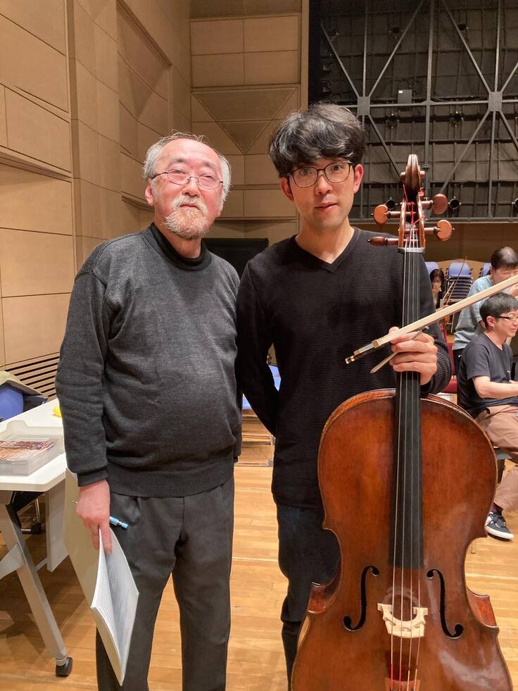 三善晃「谺つり星」は、超絶技巧のチェロ協奏曲。横坂さんの表現力、そして難曲を軽々と演奏する技量に、オーケストラは魅了されました。
