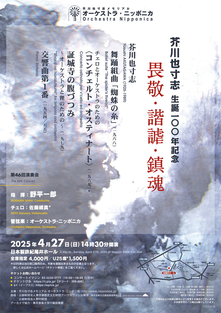 今週末4/27(日)の14時半から日本製鉄紀尾井ホールで開催される「芥川也寸志生誕100年記念《畏敬・諧謔・鎮魂》」と題されたオーケストラ・ニッポニカの第46回演奏会まで残すところ2日!