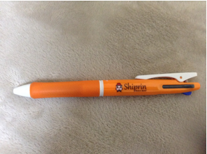 ピースボートのオリジナルゆるキャラ『シップリン』をあしらった3色ボールペン(船内限定販売品)