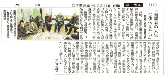 (研修の様子が紹介された2015/2/17付長崎新聞)
