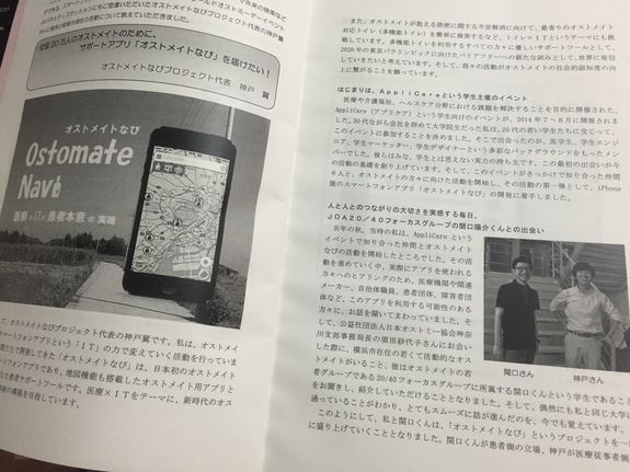 これに気づき、活動を始めてくださった、「オストメイトなびプロジェクト」の方々、支援をしてくださってる方には本当に感謝します。