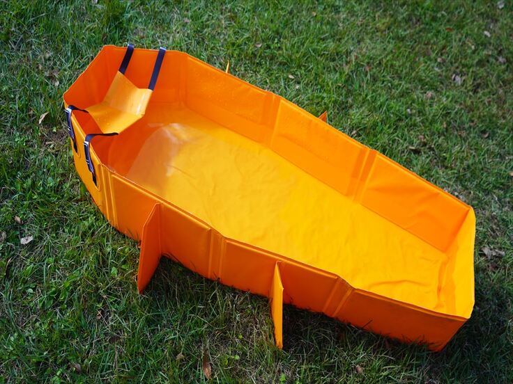 それなら、軽量で携行が簡単、数秒で準備ができる、低水量で全身が冷やせる、そんなアイスバスを自分で作ろうと開発を始めました。