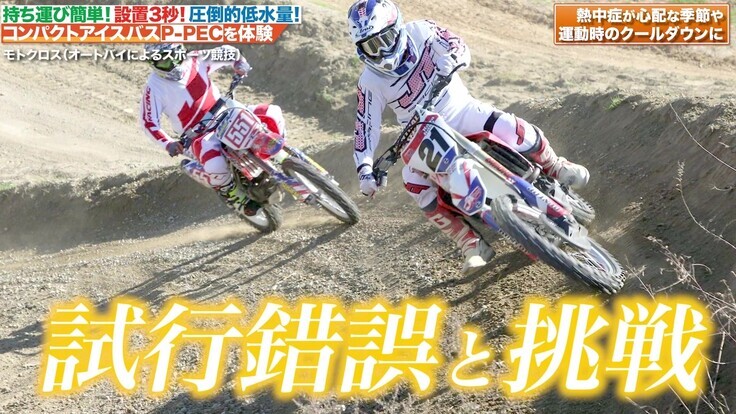 それでも頑張って試行錯誤を続け、自分で加工したりメーカーに依頼して作った試作品は数知れず、あっという間に3年の月日が流れてゆきました。何度も心折れそうになる苦労の中「モトクロス場で使えるアイスバスで仲間の命を救いたい」という小さな思いは、いつしか「すべてのスポーツやあらゆる場所で熱中症で失われる命を救いたい」という大きな希望へと変わって行きました。