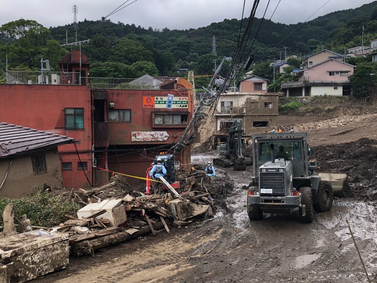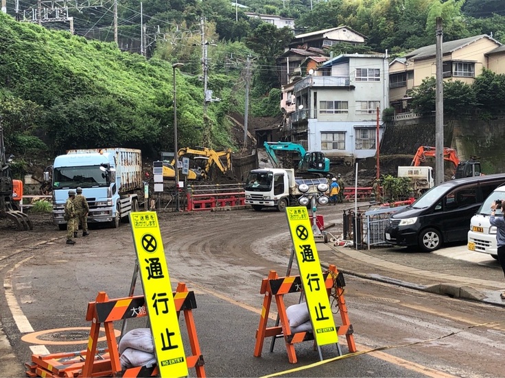 7月3日 静岡県熱海市では、土砂災害の危険性が高まったとして、市内全域に警戒レベル5の「緊急安全確保」が発令されました。長さ約1km、最大幅約120mにおよぶ大規模な土石流が市街地にも流れ込み、家屋131棟が被害をうけました。亡くなられた方が18名、行方が分からない方が10名おり、不明者の捜索活動が続いています。発災後1週間以上が経過した現在も、451名以上が避難生活を余儀なくされています。(静岡県災害対策本部:7月19日16:00時点)
