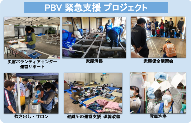 関係機関や現地支援団体などの要請を受けて、支援物資の提供や食事支援、避難所の環境整備・運営サポート、災害ボランティアセンター運営支援、被災家屋の清掃活動、写真洗浄など、現地ニーズに即した活動を行います。
