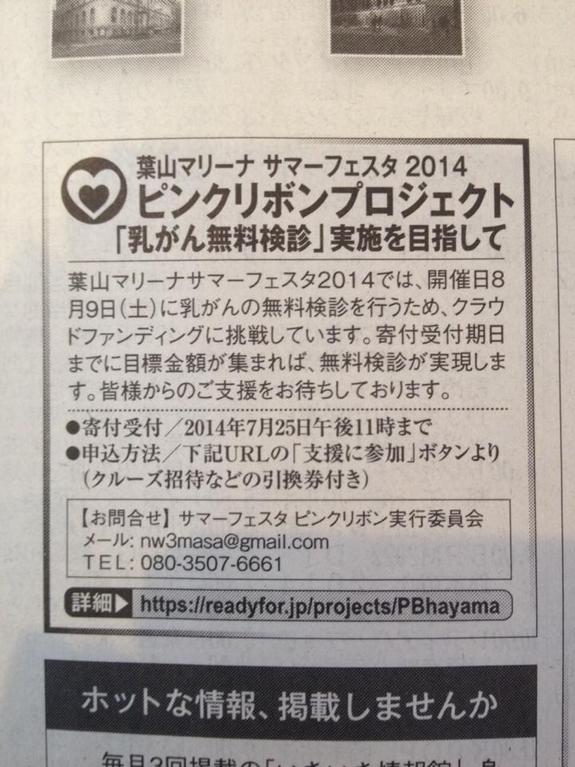 一人でも多くの女性に乳がん検診を!サマーフェスタin葉山
